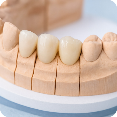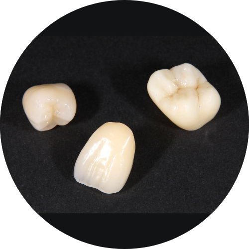虫歯や欠損などで傷んだ歯を、セラミックで作られた白い被せ物で覆う治療法です。高い審美性と汚れの付きにくさが特徴で、天然歯のような自然な仕上がりを目指せます。治療期間の目安は、神経の処置をしない簡単なケースなら約1ヶ月、歯の向きを大きく変えるなどの場合は2~3ヶ月程度です。金属アレルギーがある方でも、オールセラミックであれば安心して治療を受けられます。