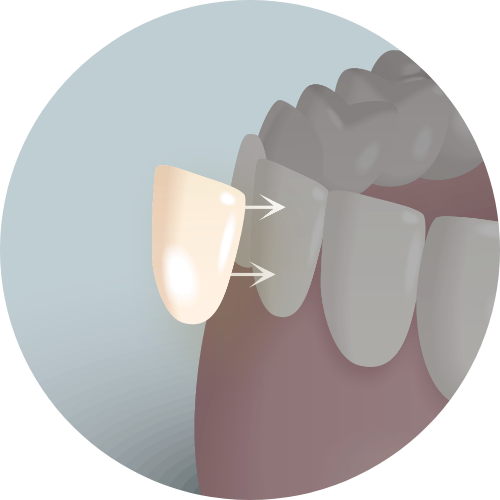 ラミネートベニアは、前歯の見た目を美しく整えるための審美歯科治療の一つです。歯の表面をほんの少しだけ削り、その上に薄いセラミックのシェル(つけ歯)を貼り付けます。