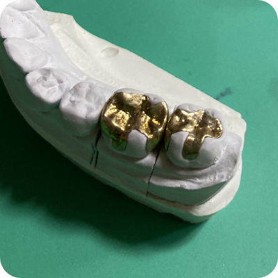 金合金で作られた詰め物は、非常に硬く変形しにくいため、奥歯などの噛む力が強くかかる部分にも安心して使えます。錆びや腐食、変色が起きにくく、長期間美しさを保てるうえ、熱の影響を受けにくく食事中の違和感も少ないのが特徴です。